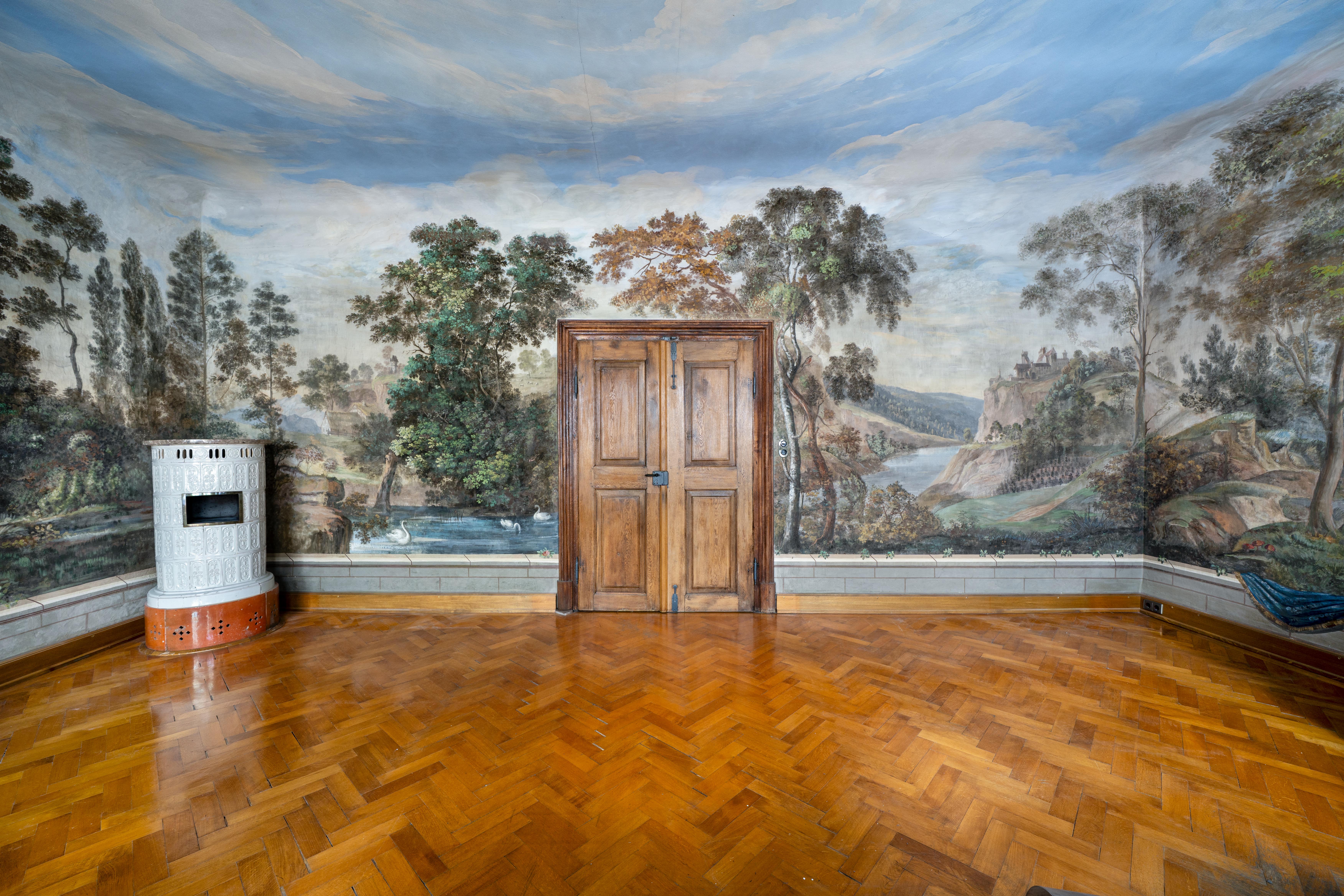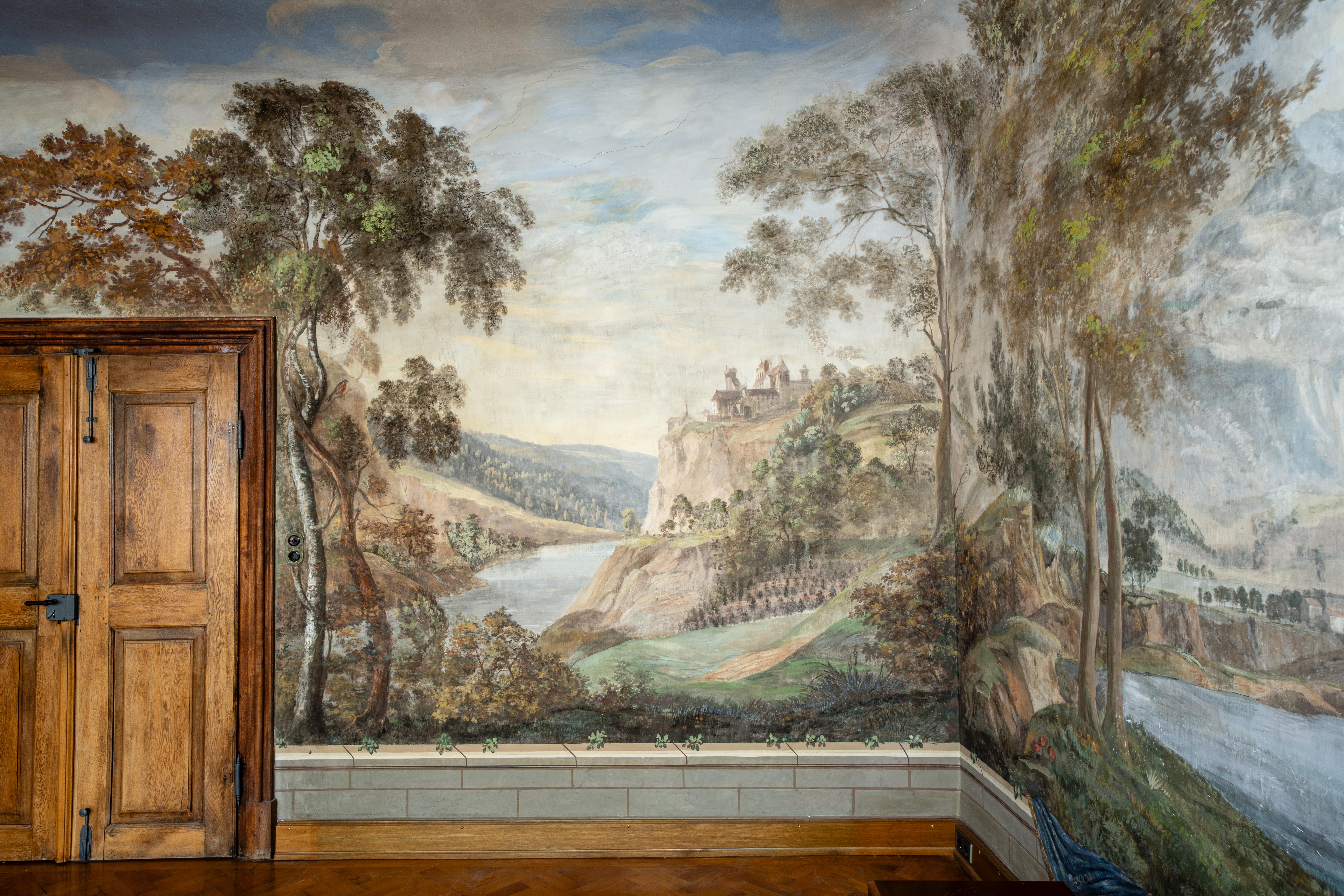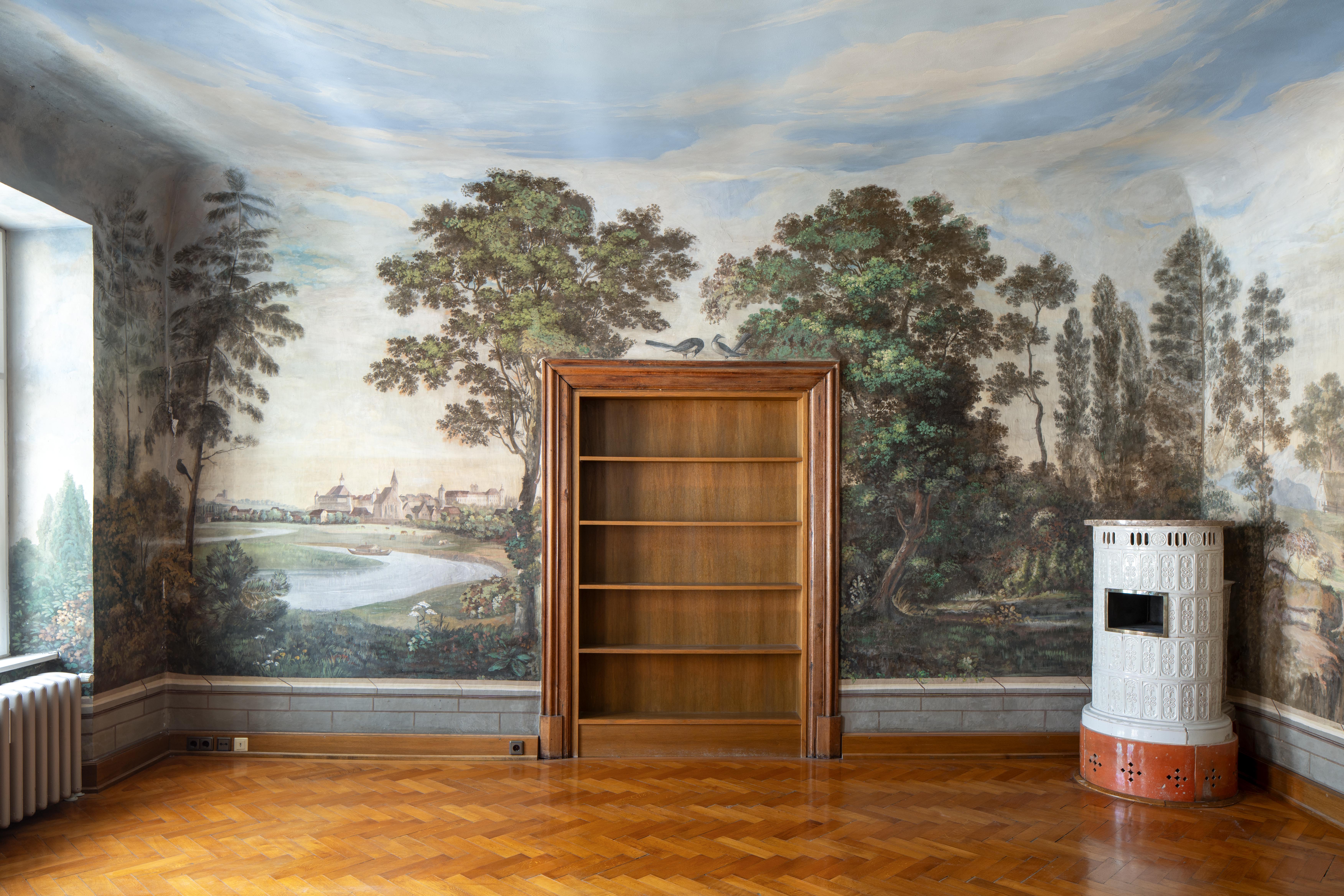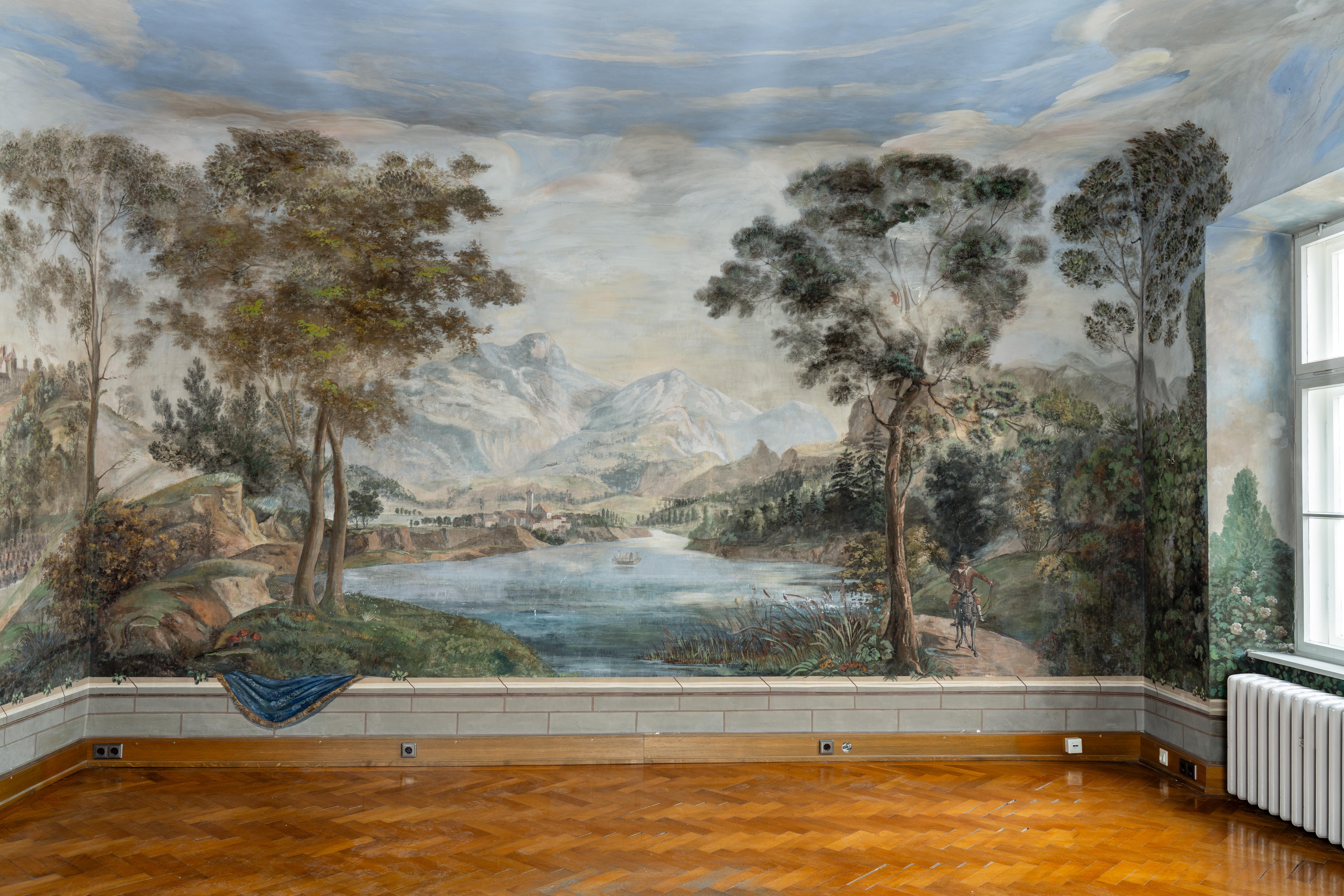 Die historische Gewerbeeinheit mit 134 m2 besticht durch ein einzigartiges, panoramaartig ausgemaltes Landschaftszimmer.